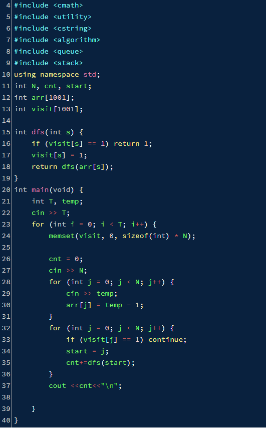 그냥 돌면서 첫 시작점과 현재점이 같으면 순열