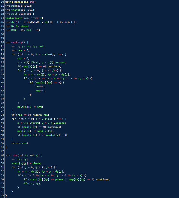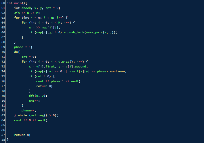 모두 인접했다면 melting()을 호출해 빙산 녹이기