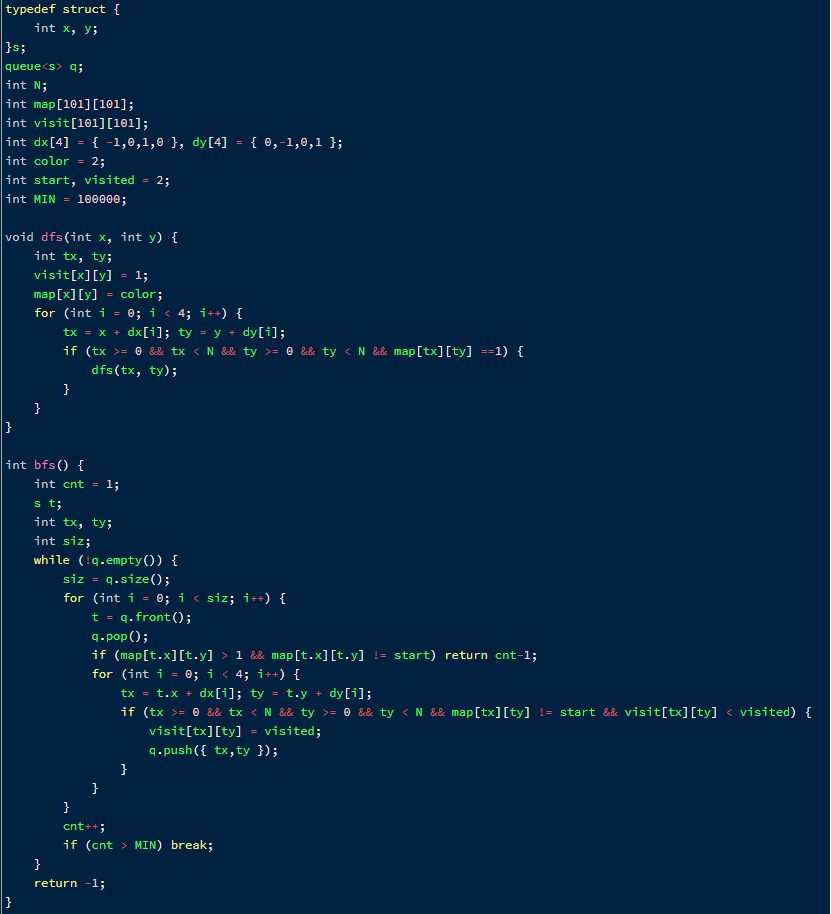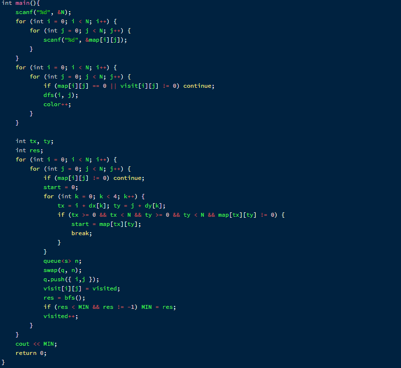 그 후에 BFS를 이용해서 해변(육지와 붙어있는 바다)부터