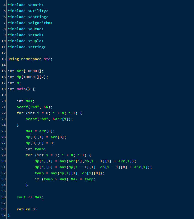 이차원배열로 하나를 뺀 상태인지 아닌지를 기록해 각각 최대값을 구하면 끝