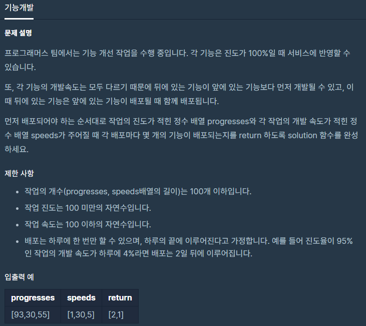 차례대로 배포되는지 계산만 해주면 끝